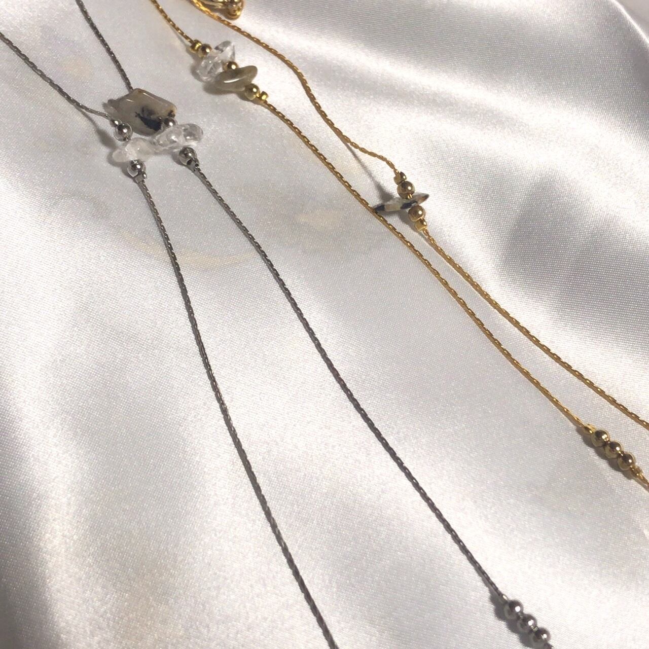 ワンポイントのストーンは「天然ラブラドライトさざれ」と