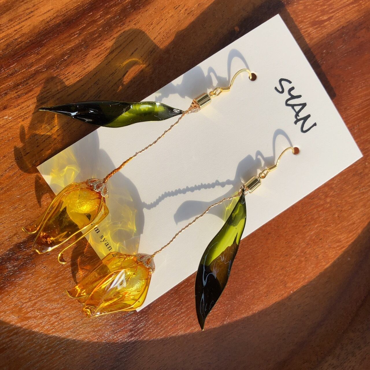 (( 今回、4色作成しました♪本品はイエローピアスです。 ))