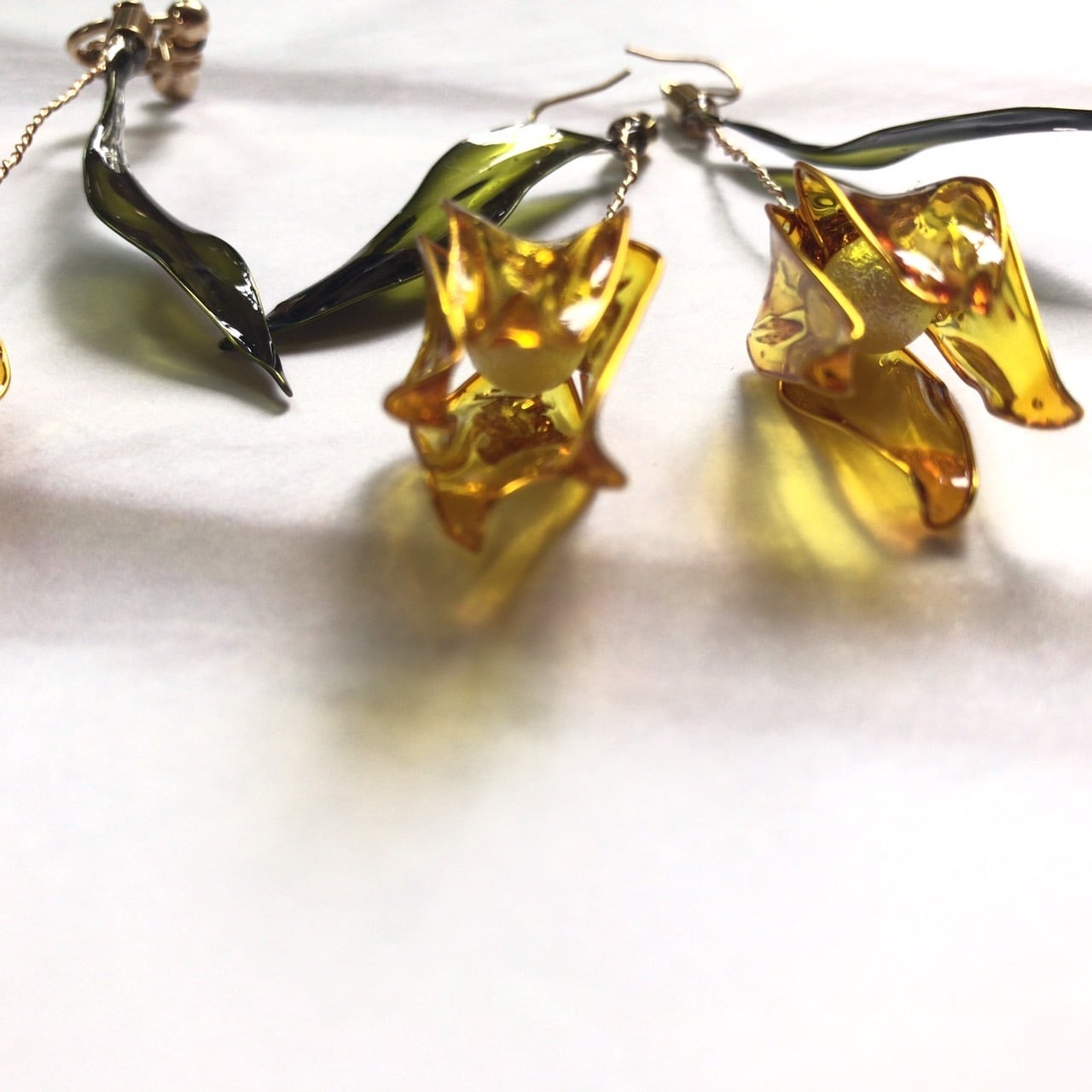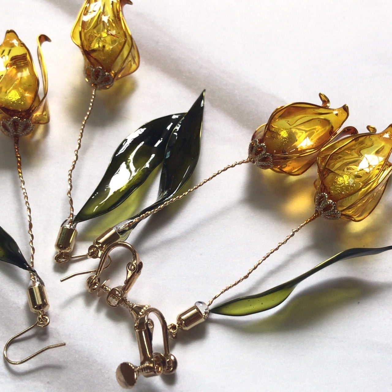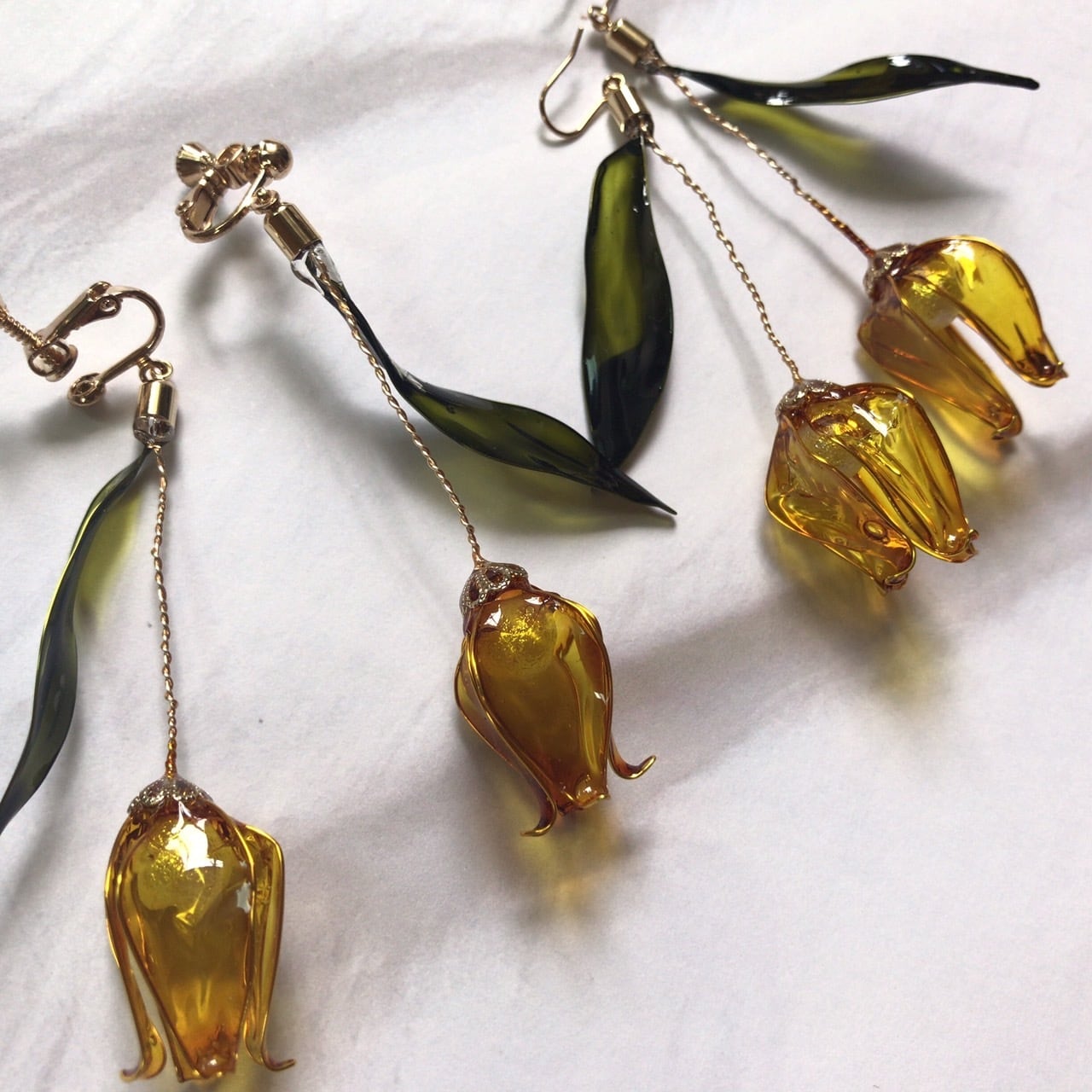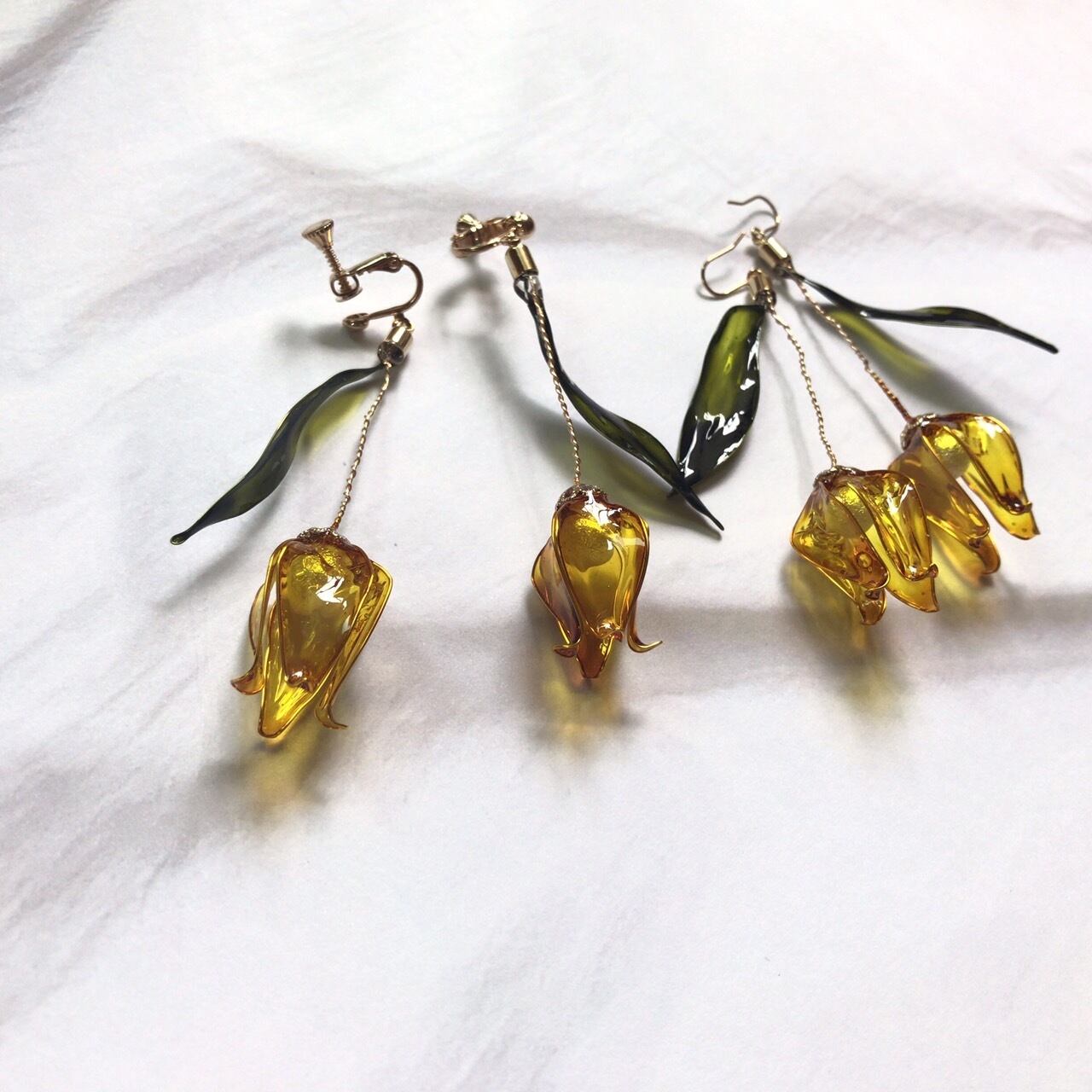(( 今回、4色作成しました♪本品はイエローイヤリングです。 ))